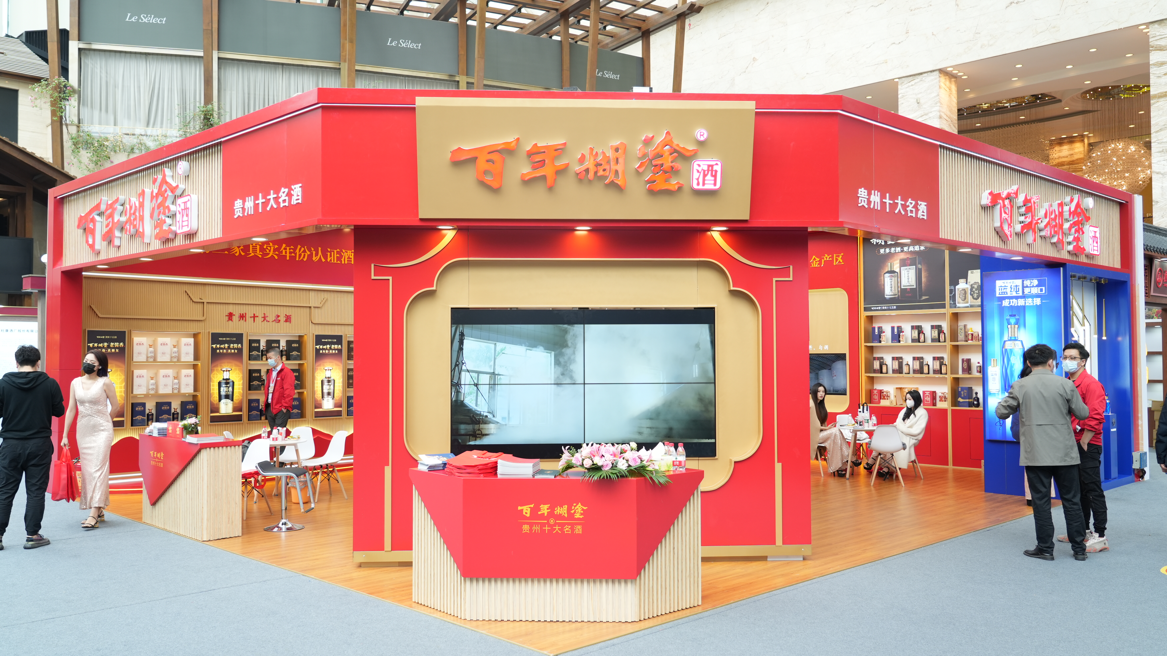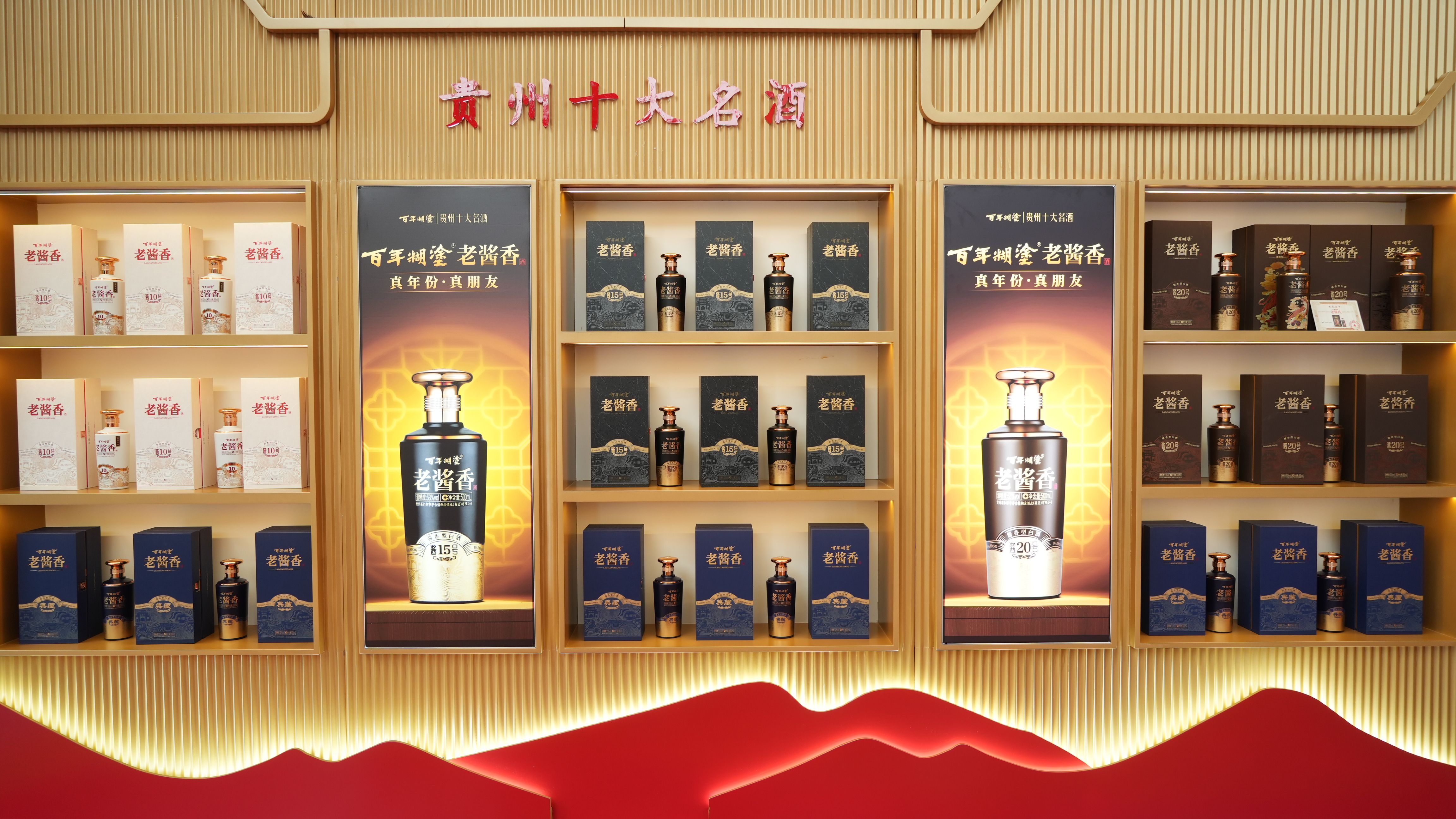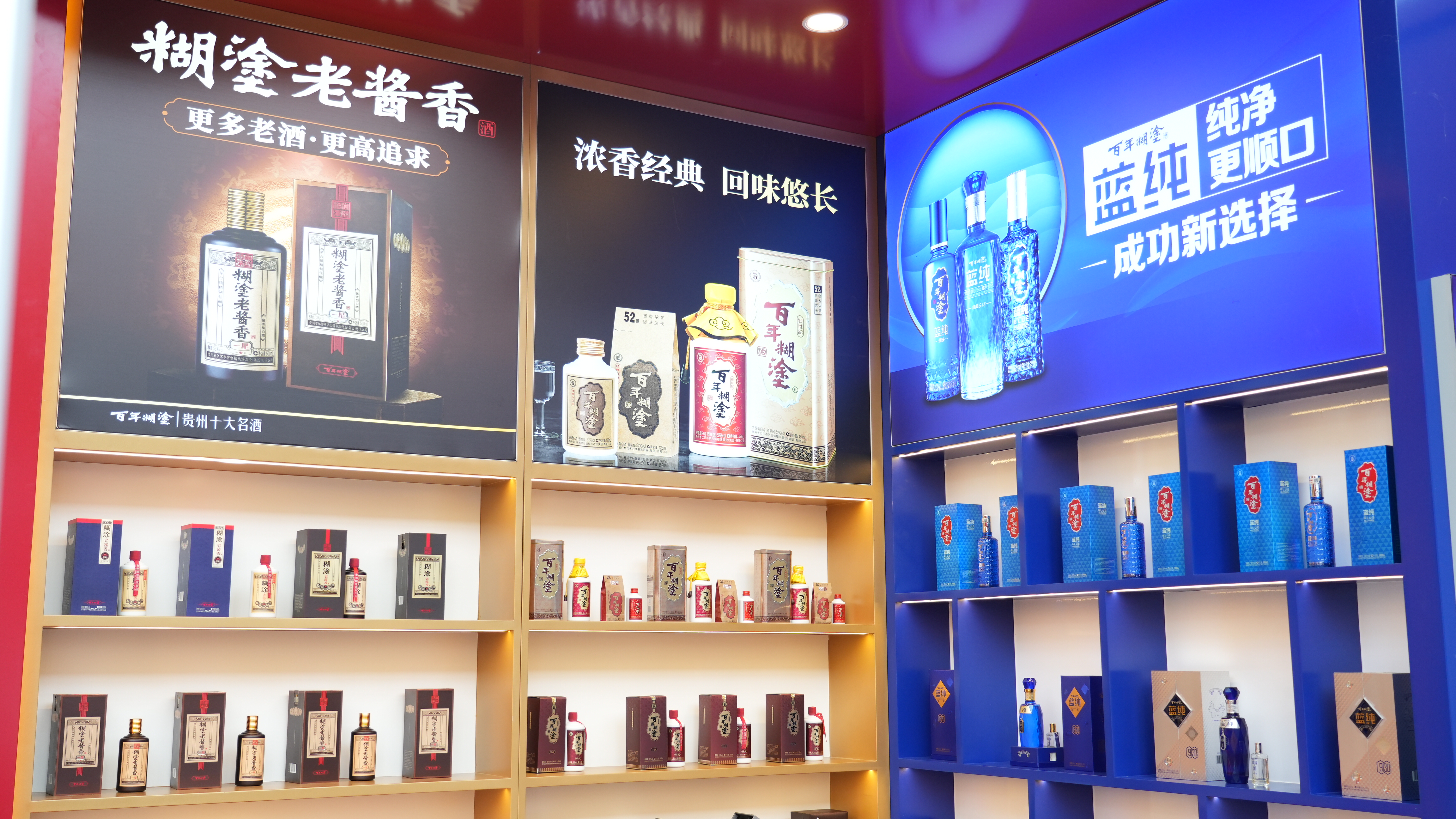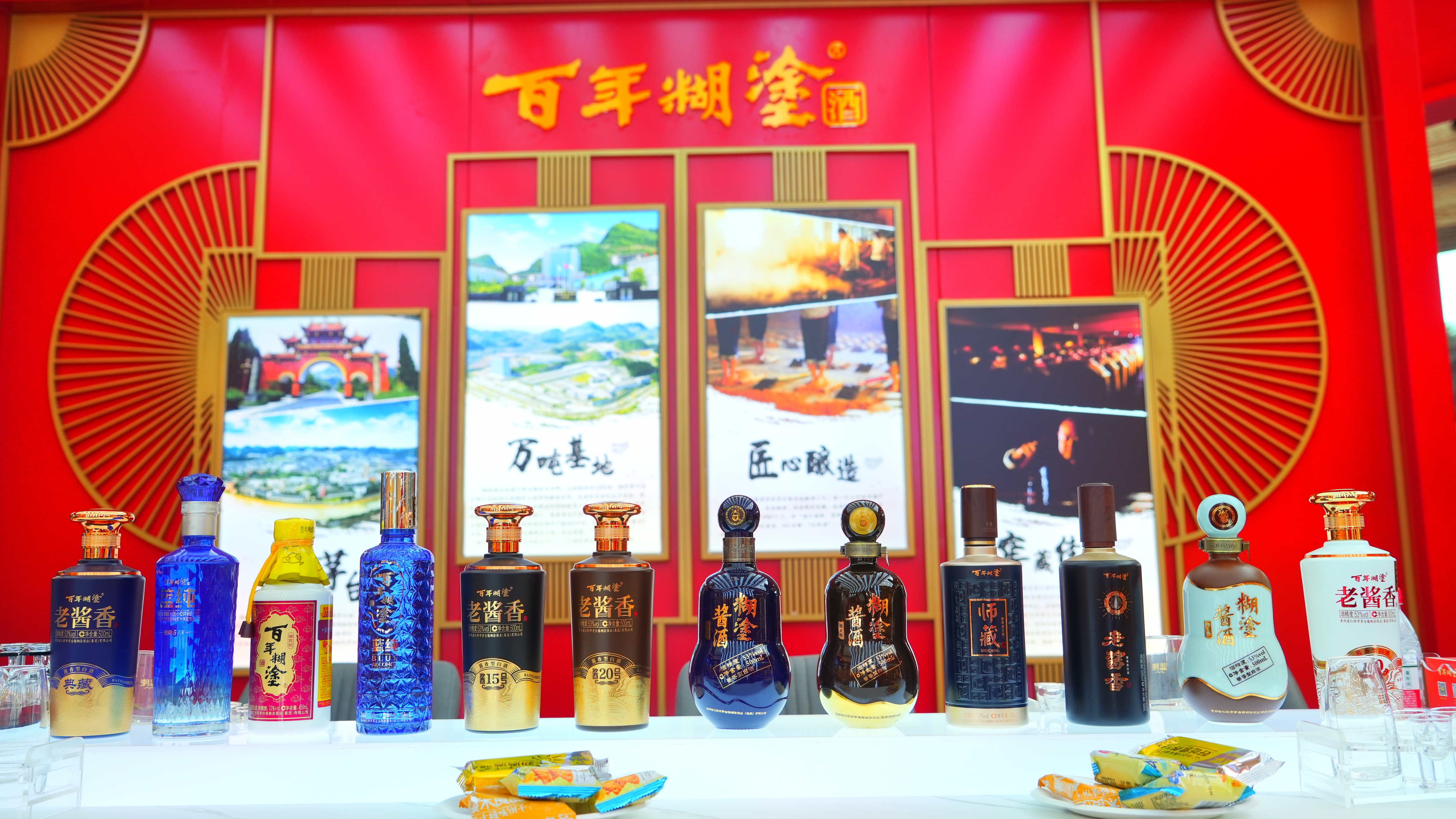 本次糖酒會,百年糊涂展區(qū)設于環(huán)球名酒薈首發(fā)位T3展區(qū),是整個展區(qū)中的黃金區(qū)域,面積有100平方,相比去年春糖,面積更大,位置更突出,投入也更多。走進展區(qū),首先映入眼簾的是百年糊涂的醬酒隊伍:代表中高端定位的“百年糊涂老醬香醬號系列”,主打國民醬酒旗幟的“糊涂老醬香”一星和三星系列,以及高端支線“糊涂醬酒”“師藏”等等;這支隊伍陣容齊整,形成了準確的品牌矩陣。