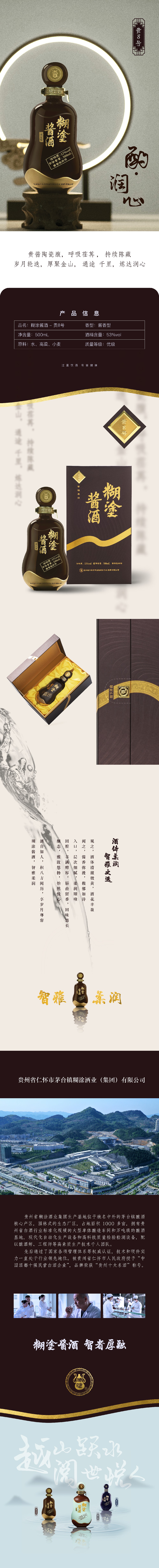 返回列表 糊涂醬酒貴8號(hào) 貴8號(hào) 香型:醬香型 酒精度:53%vol 凈含量:500mL 產(chǎn)品描述: 糊涂醬酒—貴8號(hào)產(chǎn)品嚴(yán)苛遵循高端醬酒的大曲坤沙工藝,吸納四季靈氣,用老陶壇貯藏作為基酒,歲月輪轉(zhuǎn)8個(gè)春夏秋冬,酒體微黃,加以陳年老酒調(diào)配,一口潤(rùn)心,渾然天成,禮盒選用深咖色,內(nèi)部搭配黃絲絨托映珍貴陶瓷酒瓶,厚聚金山,適合陳藏、高端政商務(wù)宴請(qǐng),智者之選。 線(xiàn)上購(gòu)買(mǎi): 天貓 京東 產(chǎn)品詳情 推薦產(chǎn)品 百年糊涂酒-經(jīng)典小百年 經(jīng)典小百年 百年糊涂酒百福6# 百福6# 百年糊涂酒 藍(lán)純經(jīng)典 藍(lán)純經(jīng)典 返回頂部